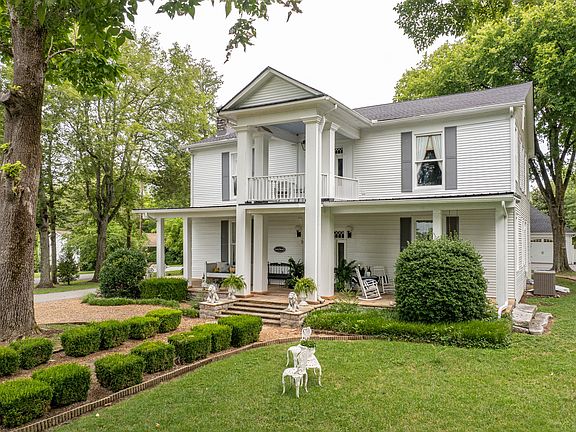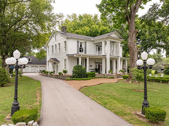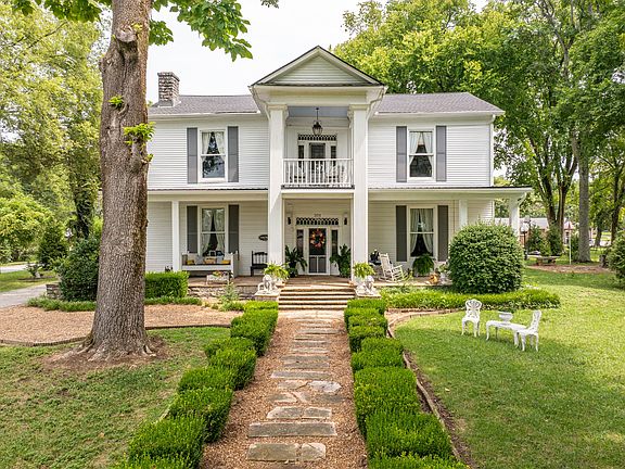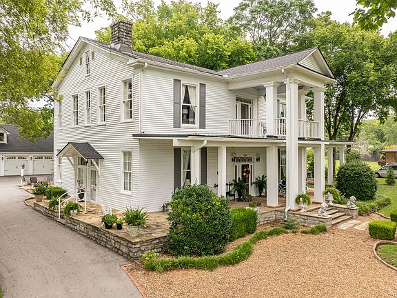 This historic home built in 1844 is known as "The Waters House" & is on the Tennessee Designated Historical Registry. Lovingly & professionally renovated in 2019, it has over 4,000 sq ft, 5 bedrooms & 3.5 baths. The all new kitchen features custom cabinetry with a walnut island, restored original built-in China cabinet and new appliances. This home has 11" coffered ceilings, central hall and gorgeous staircase and refinished original wood floors on the main level. The primary bedroom w/en suite bath and walk-in closet are also on the main floor. The second floor features four bedrooms and two full baths...each w/1913 pedestal sinks and one w/a vintage clawfoot tub. The property boasts a five car garage w/2,500 sq ft & a shop area and walk-up stairs to attic storage. New driveway (2023) & new roofs on the house & garage (2024). Water heater, HVAC system, attic insulation & sump pump new in 2019. This gorgeous home has been carefully preserved while adding modern amenities.