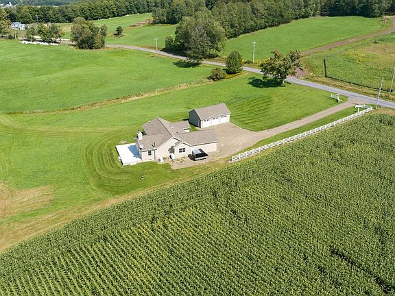 Looking to build your dream home but don't want to wait? All of the hard work has been done for you with this property and it is move in ready! The owners spent 5 years searching for the perfect location for their custom designed home. Only 7 years old, this immaculate 3 bedroom 2 bath home was designed with comfort, quality, and easy living in mind. The impressive kitchen features granite counter tops, counter seating, top of the line stainless steel appliances, and sleek wood cabinets. The open floor plan is perfect for entertaining. Recessed lighting and 3/4'' oak flooring add to the ambiance of the home. The spacious great room with cathedral ceiling, 2 ceiling fans, and fireplace with handcrafted mantle is both open and cozy. Three doors off of the living room give you access to the expansive wrap around patio. The roomy master bedroom has a walk-in closet and large en suite bathroom with tiled shower and radiant heat flooring. The additional 2 bedrooms and second full bath (also with radiant heat) are privately located at the far side of the house.This house is equipped with dual heating systems, central air conditioning, and 5 separate temperature zones, providing the perfect year round climate. Set the temperature prior to arriving home using the remote thermostat regulating system. A Generac generator provides supplemental electric to the whole house, giving you peace of mind. There is plenty of storage space in the attic and full basement. The 2 car attached garage is located at the front of the house and conveniently leads into the kitchen. A 3 bay detached garage with electric openers is perfect for storing cars, ATV's, snowmobiles, and mowers. Two of the bays are insulated and heated. Perfect spot for a workshop or man cave. Enjoy the surveyed 6.54 acres with manicured front and back yards and woods in the back. Minutes to the villages of Jefferson and Stamford and close to golfing, hiking, skiing, snowmobiling, and shopping. This house is waiting for you. Furniture is even negotiable!