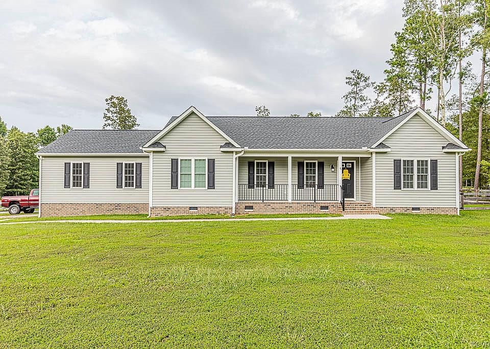 Amazing opportunity to own this Modern Ranch on a large, corner lot on a cul-de-sac. Fenced rear yard. Concrete front porch with brick steps and Rod Iron railings, Screened-in rear porch with ceiling fan & a 2-car side load garage w/ drywall. Beautiful hardwood floors throughout. Modern with an open concept, upon entering you will be greeted with a large Family Room, Kitchen and Breakfast Nook. Upgraded Kitchen cabinets are vanilla with a beautiful chocolate/coffee glaze, granite countertops, stainless steel appliances, and a huge bar island that can accommodate 5 barstools. All light fixtures are modern and upgraded. Breakfast Nook is cozy with opening to screened in rear porch. FR is spacious with tons of lights, hardwood floors and ceiling fan. Laundry room has shelving, a door to the rear yard & an additional door to the garage. Three spacious bedrooms; 2 bedrooms offers double closets and lots of light with a hall bathroom. Hall bathroom offers a tub/shower combo & upgraded double vanity. Master Bedroom offers a large walk-in closet, ceiling fan & a master bathroom w/ a double, upgraded vanity, & oversized shower w/ seat. Don't miss this one!