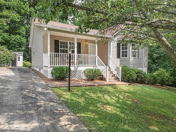Absolutely move right into this charming home! Wonderful location offers private lot with mature trees on a quiet cul-de-sac. Beautiful wood flooring thru all the living areas including one bedroom and one bathroom. Two bedrooms have new carpet and primary bathroom has new ceramic tile. Living room has vaulted ceiling, free standing fireplace and large windows for lots of natural light. Bright white kitchen cabinets, granite countertops and Stainless steel/black appliances with dining space. Adjoining room with popular barn doors can be used for formal dining room or 3rd bedroom. Primary bedroom has bay window & large walk in closet. Easy maintenance in mind with new interior paint, vinyl siding, oversized composite deck with vinyl railing. Rocking chair front porch also has composite decking. New roof in 2021.