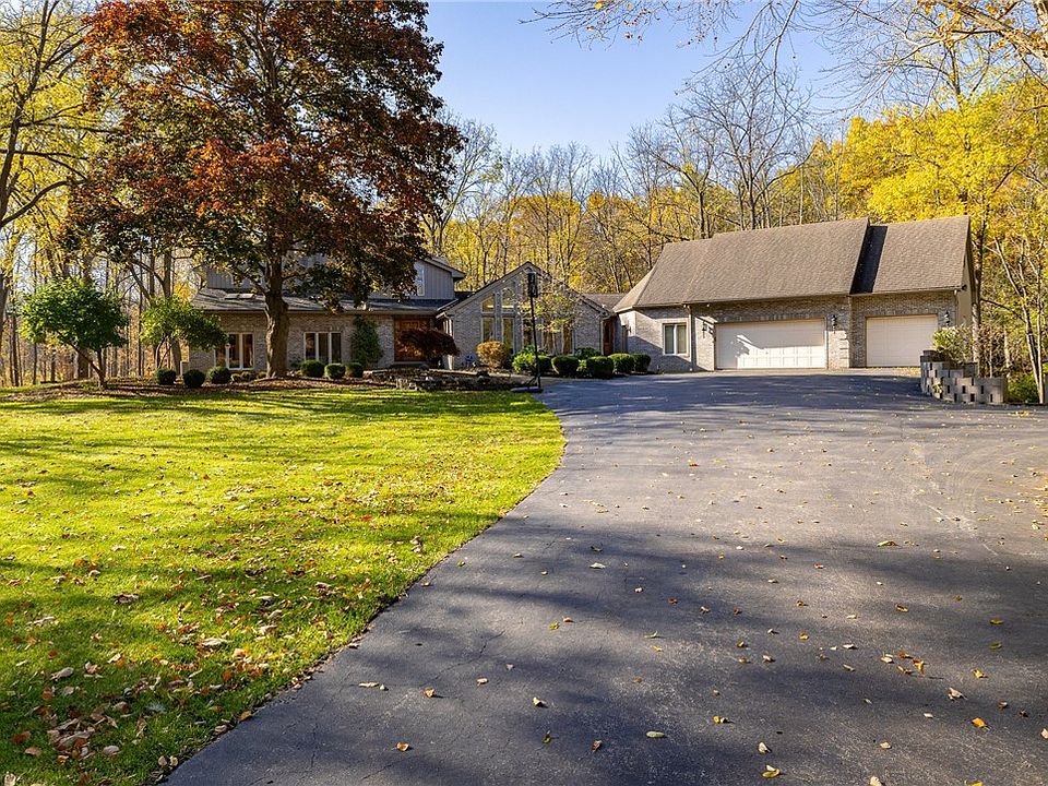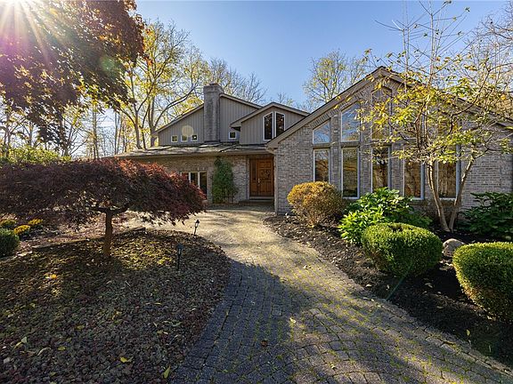 OPEN HOUSE SAT 10/26 11:30am-1pm. This stunning contemporary estate rests on nearly 6 acres of park-like grounds featuring mature trees, the Irondequoit Creek, a stocked pond, walking paths, and perennial gardens. With nearly 5,000 sq ft of luxury, the home boasts cathedral ceilings, Italian marble floors, white oak trim, and walnut-accented hardwoods. The gourmet kitchen offers two new stainless fridges and a Viking gas range. First-floor bedrooms each have en-suite baths and access to the sun porch. The entire second story is a private owner’s suite with a library, dressing room, sauna, steam shower, and Jacuzzi tub. Natural light floods in from numerous skylights and large windows, complemented by wood-burning fireplaces throughout. A 3-bay garage, detached barn, and ample parking complete this extraordinary "vacation at home" estate. Delayed showings until 10/26/24 at 11:30am. Delayed negotiations until 10/29/24 at 4pm. 24hrs to respond to all offers.
