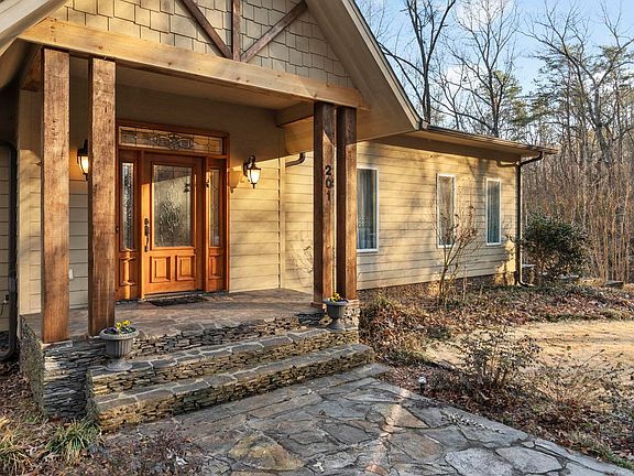 Welcome to your new beautiful mountain home located in the shadow of Table Rock! This gorgeous property is situated on almost six acres of private wooded land and offers several modern conveniences such as hardwood floors, stainless steel appliances, walk in closet, downstairs wet bar and a bonus room large enough to fit a competition pool table in! When walking in the front door you're welcomed by a gorgeous custom spiral staircase that leads to a loft area. If natural light is important to you, this home has amazing large windows that let light in. This home also features the master on main with an exit to the wrap around deck! The master bathroom has a dual shower, garden tub and marble floors! Moving to the exterior of the home, it has a massive deck that wraps from the kitchen to the master bedroom and has a reinforced area with an outlet, perfect for a hot tub! Come see these features, plus many more. This property is located within minutes of Victoria Vineyards, Table Rock, Ceasers Head and much more! Schedule your showing with us today!