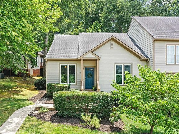 Fabulous single story, end unit townhouse in a private and beautifully maintained neighborhood nestled among gorgeous trees and mature landscaping. Dreamy screened porch with new screens and private wooded view. Huge bay window allows natural light to flow throughout home. Vaulted ceiling, open floor plan, recessed lighting, kitchen pantry, WIC, 2019 HVAC and gas hot water heater, 2021 replacement windows, 2021 refurbished screened porch, 2022 new LVP flooring and carpet. Siding upgraded to HardiePlank in 2013. You'll be SO HAPPY you looked at this one. It lives large with its efficient floor plan and so many closets. HOA covers roof, gutters, external maintenance, pest, weekly yard maintenance, common areas, and more. Google fiber available.