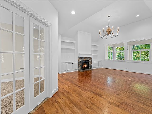 A covered front porch opens into a spacious living-dining combination design. As you enter, a bright home office or den is on the left with French doors for privacy and a coffered ceiling dining area is to the right. The living room opens up the entire space making it great for entertaining family and friends. A cathedral ceiling invites the light to travel throughout the space from the sunroom on the rear. A gas fireplace is flanked by built-in cabinets adding to the southern style display. The kitchen has just enough privacy to offer ample cabinet and countertop space yet is open at the kitchen sink allowing the chef to be a part of the party while cooking. The split floor plan design separates the two main level guest bedrooms from the primary suite on the opposite side. The primary suite runs from front to rear on the left side of the house. The bedroom offers large windows overlooking the private wooded backyard. On the same side, the bath features large windows over the large jetted tub. A staircase tucked off the service entry leads to a spacious bonus room and fourth bed with private full bath. Whether you're housing in-laws, caretakers or growing children, the bonus room extends across the front of the house and offers seclusion with an abundance of added space. Off the bonus room is a owners favorite in a large holiday storage closet. This versatile space can be finished for a multitude of purpose. Line with shelves for climate controlled storage, use as a hobby or craft room, bunk space, limitless possibilities. Waterford Pointe offers a junior olympic swimming pool, tennis and pickleball, playground, horseshoe, a clubhouse with showers and restrooms and so much more. Community amenities are just a golf cart ride away. Streetlights and sidewalks throughout. Located approximately six miles from Seneca, SC and approximately 10 miles to Clemson University, less than an hour to Greenville SC.