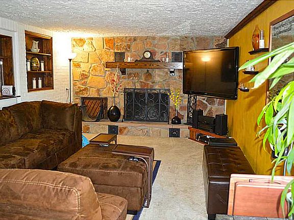 WOW! walk to Trinity High School from the well maintained two story brick home! gorgeous DOUBLE lot with professional landscaping everywhere! nice size eat in kitchen, dining room with newer paint and carpeting, huge living room with log burning fireplace, access the large deck from the living room which overlooks the yard, lower level family room with a deco electric fireplace, also the lower level has a workshop, laundry, and tons of extra storage, the two car carport has a fireplace and running water