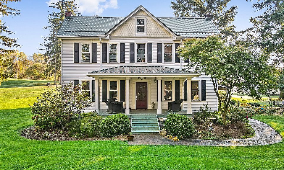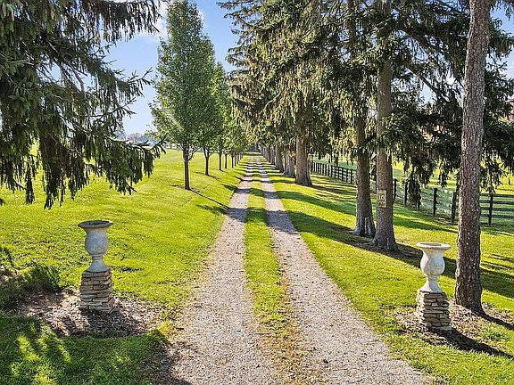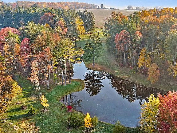 Drive down the long tree lined lane to your private paradise, Whispering Pines Farm. This pastoral 34 acre farm features a charming 2,538 sq ft farmhouse, huge 3 bed/2 bath carriage house atop detached garage, and impressive 2 story timber frame 7 stall barn with tackroom and cupola. Dual ponds with connecting waterfall feature are embraced by woods with serene walking path. Farmhouse: generous room sizes, custom rustic kitchen cabinets, huge walnut topped island, built in china cabinet, subzero fridge, handy pantry, laundry and back stair. Barn wood floors provide rustic charm, thoughtful details throughout including stained glass, built-ins. Front and side porches accessed by flagstone style concrete walkway add to the authentic charm. Carriage house features subzero fridge, island, rustic style main bath, enormous great room with vaulted ceilings, master with ensuite and 2 decks to take in the view. The serenity and thoughtful renovations of Whispering Pines Farm are unrivaled!