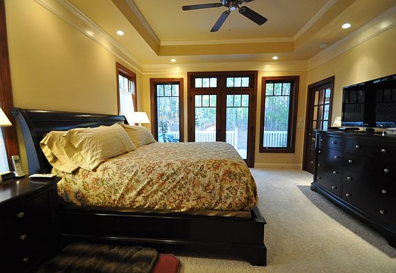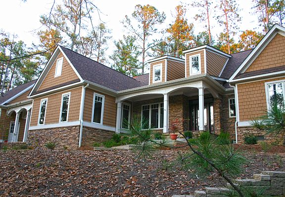 This stunning home will take your breath away. Located on top of a hill overlooking forest and valley. The exterior features offer a maintenance free home from stone work, Hardi plank and Trex decking. When you walk into this warm and inviting home the first thing that will strike you are the rich Brazilian cherry wood flooring throughout. The Frank Lloyd Wright theme is everywhere you look in this home from the large wood stained trimmed windows to the straight lined design of the great room and kitchen combination. The kitchen would be any professional chef\'s dream. The extensive custom cherry cabinets, Uba Tuba granite countertops and top of the line stainless appliances will make cooking and entertaining a delight. Imagine gazing out into the large great room with the fireplace burning as you are creating your special meal for family and friends. Adjacent to the kitchen is a wet bar entertainment area which features wine cooler, refrigerator with ice maker, accent glass cabinets, sink and granite countertops. If you love privacy, you will love this master suite with French doors that open to the expansive deck. Enjoy nature, the sounds of birds and the smell of the pine forest as you drink your morning coffee. Plenty of room in this master bath from double vanities, separate tub and shower, granite countertops to a large walk-in closet. This one of a kind home is exceptionally priced so please don\'t hesitate to call for more information. This home is built on two lots. They owner will pay $2,000 toward POA dues on the second lot.