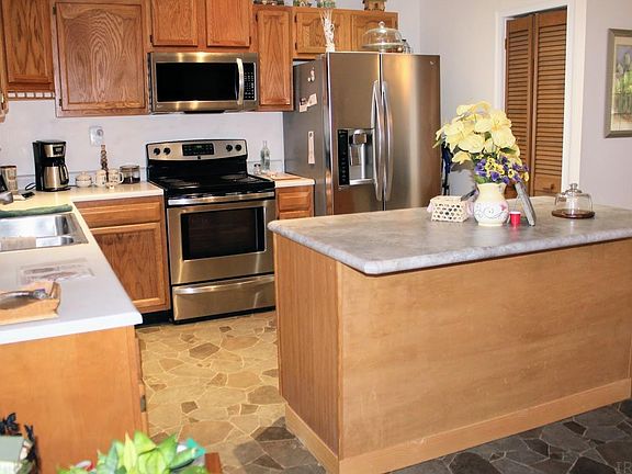 - Ceiling Fan(s), Laminate Counters, Kitchen Island, Open Floorplan, Tub/Shower Combination, Main Level Bedroom Suite