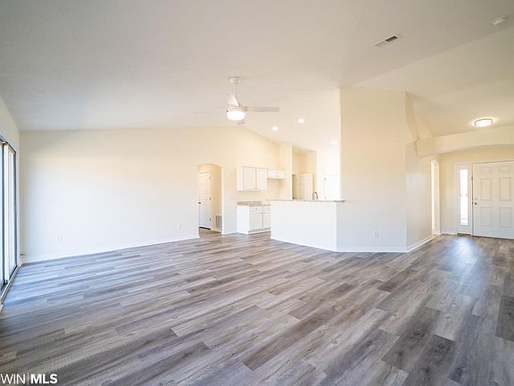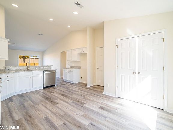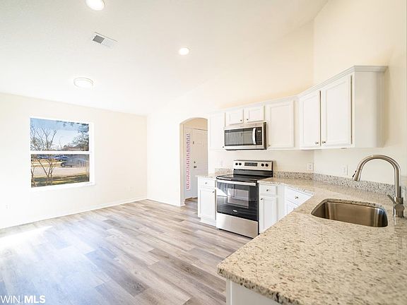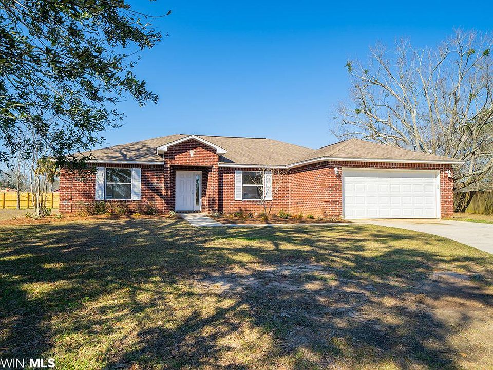 Beautifully updated home in the heart of Foley! This stunning home is perfectly situated on a large pie-shaped lot at the end of a quiet cul-de-sac and was tastefully remodeled in 2021. The home features luxury vinyl plank flooring throughout, White G granite countertops, soft close bathroom vanities, updated lighting fixtures, marble window sills, vaulted ceilings in the living area and kitchen, recessed lighting in the kitchen, stainless steel appliances, elevated bar with seating for four, double car garage, a bonus room/office, and freshly painted walls, doors, and trim. The master suite boasts a large walk-in closet, double vanity, walk-in shower, and separate tub. The Hickory Bend community is conveniently located just south of Hwy 98 and less than one mile West of Hwy 59 offering easy access to downtown Foley and numerous shopping, dining, and entertainment attractions.