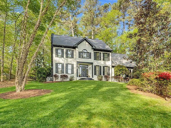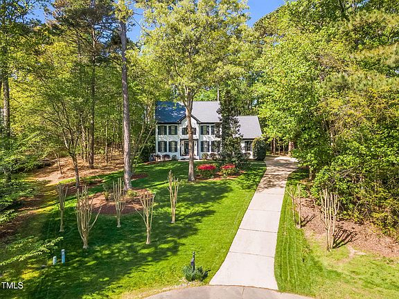 Traditional Luxury in the Heart of North Raleigh! Nestled on over an acre of sprawling property, this hard-to-find gem offers the perfect blend of space, elegance, and convenience. This 4-bedroom, 3-bathroom home welcomes you with a grand two-story foyer, leading into a bright and open living space with 9-foot ceilings. The main level showcases original real hardwood floors, brand-new carpet, and elegant plantation shutters throughout. A flexible downstairs space serves perfectly as a home office or cozy sitting room, offering the ideal retreat for work or relaxation. The primary suite is a true haven, featuring a luxurious ensuite with a garden tub and walk-in shower. Upstairs, you'll find spacious bedrooms and an expansive bonus room—perfect for a home theater, playroom, or office. Need more space? The unfinished third-floor walk-up attic is a blank canvas, ready for your personal touch. The side-load two-car garage is tucked away at the end of a long driveway, offering privacy and ample parking. Enjoy the outdoors with lush, tree-lined surroundings, a rarity in Raleigh! Located just minutes from Falls Lake, you'll have easy access to boating, scenic trails, and sandy beaches. Plus, with top-tier shopping, dining, and entertainment nearby, you get the best of both worlds—peaceful, private living with city convenience. Don't miss this rare opportunity to own a timeless, traditional home in one of Raleigh's most sought-after locations!
