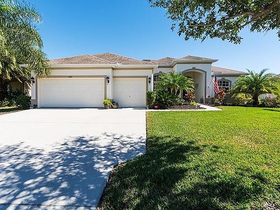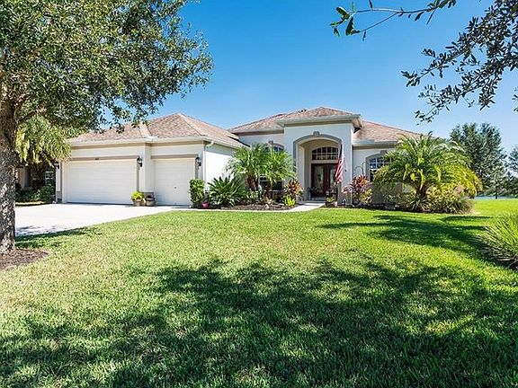 Executive Area of River Plantation - Custom Built 4/3/3 with a beautiful waterfront view from your screened in lanai and pool area. The lush landscaping offers great curb appeal. Note the quiet sitting area on your left, as you pass through the double front doors, under the covered entryway, into the large foyer. The open floor plan, with low maintenance 16" ceramic tile floors throughout the living areas, has a separate dining room with tray ceiling and living room. Spacious chef's kitchen comes with both a convection and regular oven, granite counter tops, top of the line stainless steel appliances and wood cabinets. Under counter lighting as well as interior cabinet lighting. Sit around the breakfast bar while your chef prepares tasty meals or meander through sliders on to the oversized screened lanai and pool area. This home is perfect for entertaining or to enjoy some R & R while you watch Mother Nature's friends on the lake. Breakfast nook, split floor plan, private in-law suite with its own full bath as well as two other bedrooms and bath are at the other end of the house. The master has tray ceiling, sliders to the pool area, dual sinks, walk in closet, jetted tub with separate walk in shower. In-wall pest control, ridge vents, radiant barrier and a three car garage too. Minutes to Ft. Hamer Bridge, Bradenton & Lakewood Ranch. Community canoe launch or boat ramp at Manatee River by Ft. Hamer Bridge is five minutes away. Low HOA fee, NO CDD fee. Drive by - you will like what you see!