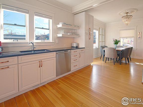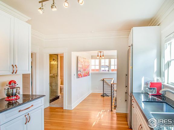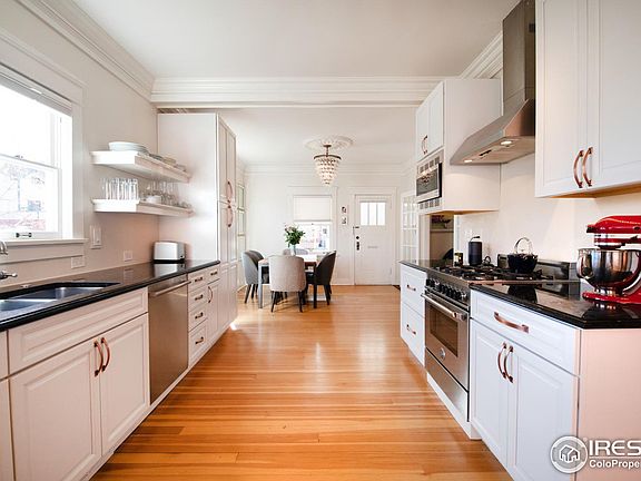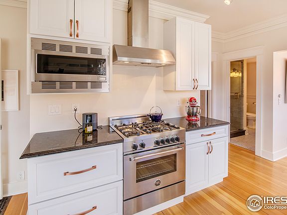 Beautiful East Pearl bungalow located in Downtown Boulder, close to restaurants and shopping. An extensive remodel to this City of Boulder Landmarked structure was completed in 2016 using only the highest quality materials available. Features: Chef's kitchen with granite countertops. Custom cabinetry. Top-of-the line stainless appliances: Bertazzoni range and hood, Liebherr fridge, and Bosch dishwasher. This home is perfect for those who love to cook and entertain! Stylish den with French doors, floor-to-ceiling custom cabinetry and illuminated open shelving to maximize storage and areas of display, with a one-person workstation. Hardwood floors throughout. Victorian crown molding. Mix of modern and historic light fixtures. Custom window coverings (including Hunter Douglas motorized woven shades and blackout Roman shades in the bedroom). Modern bath w/ a walk-in shower, featuring carrara marble and cherry wood vanities. Air conditioning and heater were recently replaced. South facing, allowing for beautiful natural light the entire day. Covered porch facing 19th Street. Private covered on-site parking and access to Whittier parking permits. 195 square foot unfinished basement with washer & dryer.