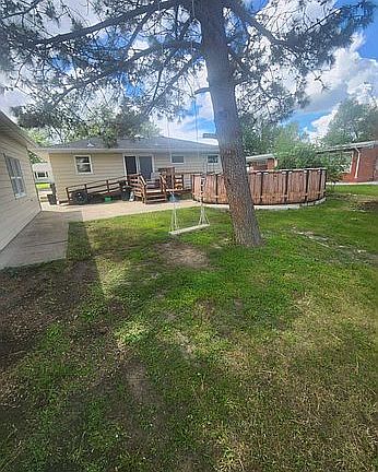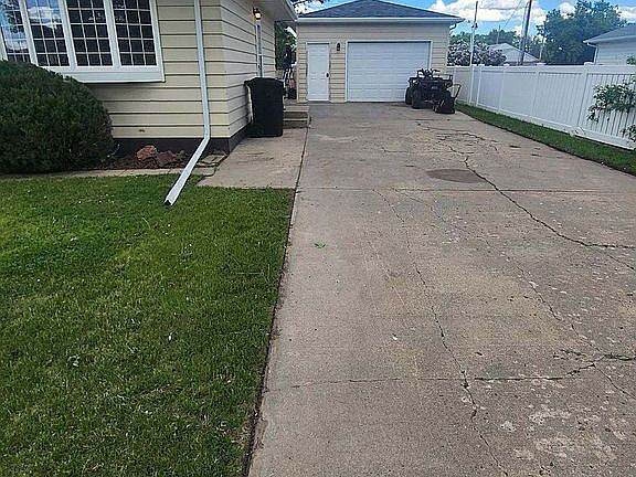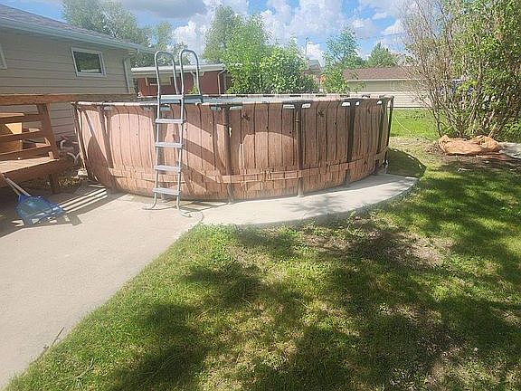 Wonderful 2 owner home has 3 bedrooms, 2 baths, fully finished basement with newly added kitchenette in the utility room. deck off dining room area leads to a concrete patio connected to a large 23 for circular slab with a 56 inch deep 22,000 gallon pool sitting on it. This property has a tandem 44' long insulated, sheetrocked and fully finished garage with overhead doors on both ends leading to alley for easy drive through with trailer or boat. Large backyard, mature trees and landscaped with beautiful lilac bushes that provide a natural privacy barrier. Shingles were just replaced with high wind rated shingles 2 years ago. Quiet neighborhood & walking distance to ARC & WSC. Move in ready. Realtors welcome at 2%