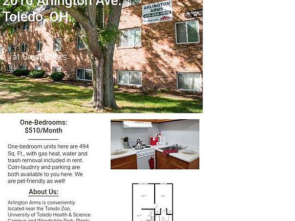 This 494 square foot townhome home has 1 bedrooms and 1.0 bathrooms. This home is located at 2010 Arlington Ave, Toledo, OH 43609.