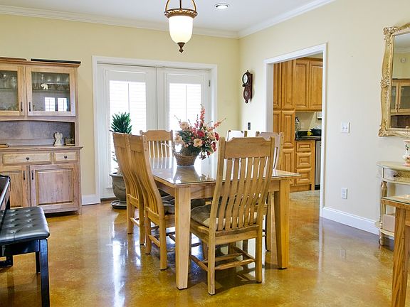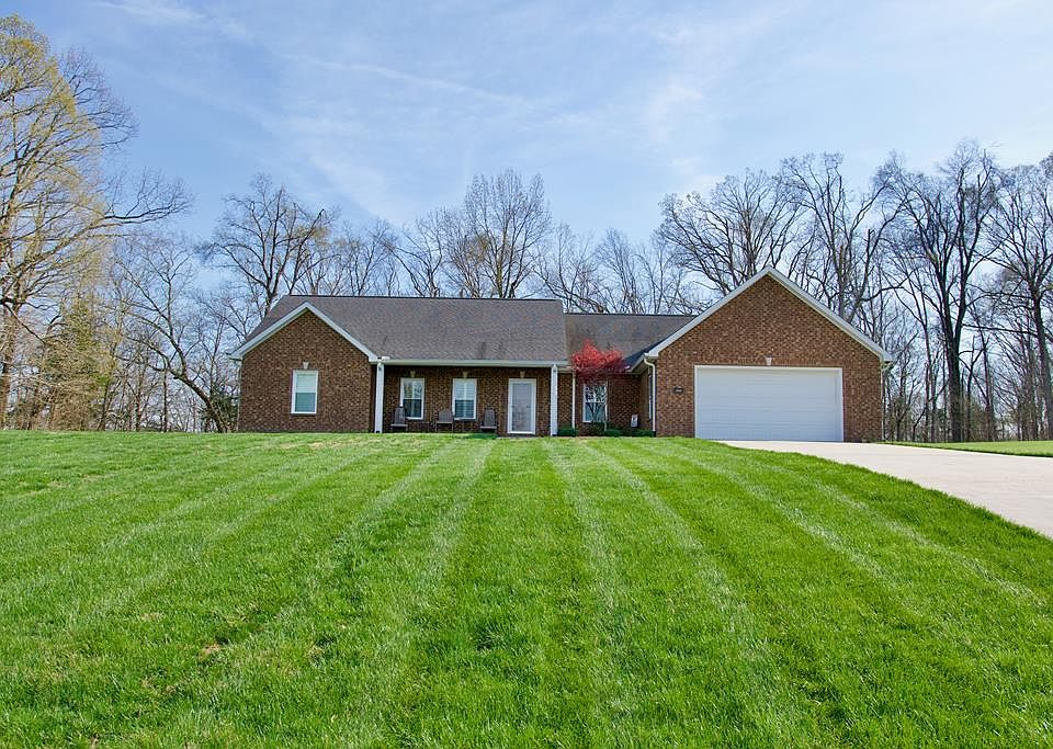 This one-level brick ranch boasts 2500 square feet, and sits on 2.7 acres! Inside, you will find sealed concrete floors throughout the entire house, making clean-up a breeze! This home features a split bedroom floor plan and a spacious master suite with walk-in closet and private bath with freestanding tub, stand-up shower and custom vanity. Formal dining area located between the kitchen and living area makes entertaining guests easy! You will find a huge kitchen with custom cabinetry, giving you all the storage and cooking space you will ever need! Attached 1 car garage as well as 12x20 metal building. Natural gas hook-ups ensure your heat pump, range and water heater will keep working for you while saving you money! AND, this home includes a built-in generator back-up system that will take over in the event of a power outage, even with its own breaker box. Give your family some peace and mind for the future with this system! All of this on a huge lot, just minutes to town!
