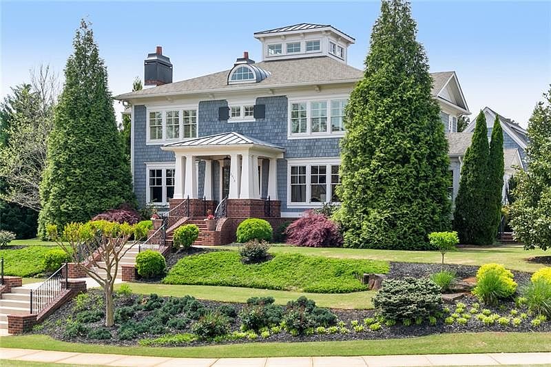 One of Roswell's premier custom-built homes in the gated community of Ivey Mills. Graciously proportioned design with understated elegance, this classically styled Georgian architecture will take your breath away. Natural light is abundant throughout the house with details that include gorgeous millwork, arched entries, stone-cast fireplaces, and a light-filled two-story cupola. By design, symmetry is the key to this stunning style and showcases the spaces beautifully with open rooms, and an indoor-outdoor lifestyle with covered patio, pool, fire pit, and guest apartment. The dining room features a stone-cast fireplace and delicate glass globe and brass chandelier highlighting the built-in bookshelves flanking the fireplace. Adjacent to the dining room is a wood-paneled sitting room/study with a marble surround fireplace, coffered ceiling, and elegant lighting. The chef's kitchen features double islands, natural stone countertops, Wolf 6-burner gas cooktop and Wolf double wall ovens, built-in 48" SubZero refrigerator, warming drawer, microwave drawer and beverage cooler. A large walk-in pantry, abundant workspace, and storage are featured throughout the kitchen. The alcove breakfast room off the kitchen features a charming window seat, shiplap ceiling detail and built-in cabinetry with beverage cooler. Additionally on the main level: guest suite with private full bath, large walk-in pantry, laundry room with sink and cabinetry, home office with cabinetry for storage and natural light. An open wood staircase leads to the upstairs primary bedroom and three secondary en suite bedrooms. The primary suite features a fireplace, hardwood floors, two closets custom-designed by California Closets, a spa-style bathroom with double vanity, a free-standing claw-foot tub, and marble shower. Generously-sized secondary bedrooms upstairs feature walk-in closets and hardwood floors. The terrace level features a 1,000-bottle wine cellar and tasting room, stained walnut bar with natural stone countertops including beverage cooler, ice maker, dual drawer dishwasher and wine cooler also featuring hardwood floors with distinct herringbone design. Additionally, the terrace level features a cozy theatre room with video screen, projector, surround sound system, and hand-carved double wood door entry; guest suite with a full bathroom featuring steam shower and dry sauna, and exercise studio space. The lush outdoor design creates a private backyard that's perfect for easy afternoons and entertaining. Pebble-tec pool and spa, multiple sitting areas, putting green, covered patio with fireplace, and easy access to the main floor covered deck and screened porch. Private entry allows access to the guest apartment/office and includes a full bathroom, kitchenette, living/bedroom space and sitting area. Ivey Mills is a gated community of 23 estate homes conveniently located near schools (public and private), dining, retail, Historic Roswell, Avalon, downtown Alpharetta, Georgia 400 and more.