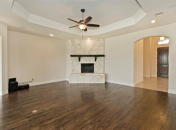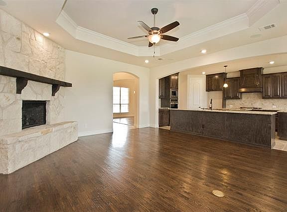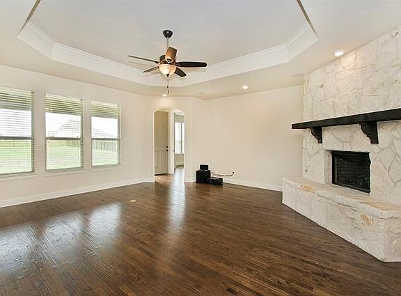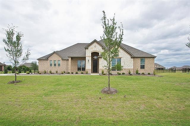 Elegant single story home on 1+ acre in Celina TX. Fantastic upgrades - home was over $500K (BEFORE the fence was added) when recently built! Seller's change in life-plan is your gain. This 4 bed, 2.5 baths features formal dining, study, and 3 car garage!! Kitchen has gorgeous granite counters, ample cabinet space, double ovens, island and opens to the living room featuring a beautiful stone floor-to-ceiling fireplace with extended mantle. The master bath has a frameless shower, granite counters on vanity, built-ins, and massive walk-in closet. This home also features hand scraped red oak floors everywhere but for porcelain tile in all wet areas. Amazing eye for detail throughout this stunningly gorgeous home.