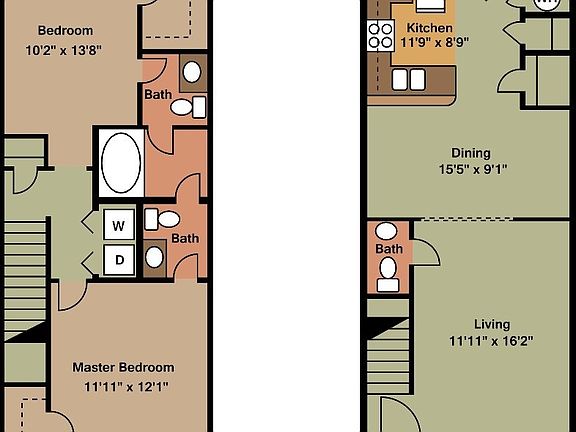 Our Peyton apartment is a lovely floor plan with lots of storage and space. The townhomes were built as homes and have attic storage, outdoor water spigots, and private patios. It has a huge garden tub that's shared by the master and guest bathrooms. The full size washer and dryer are included and upstairs so it's not necessary to carry your clothes up and down the stairs. Walk in closets are available in each bedroom. This is just a perfect apartment and a must see. The Townhomes of Chapman's Retreat is located right beside Chapman's Retreat Elementary and The Children's Academy preschool, off Duplex Rd. However our office is located at 1001 Pinehurst Drive just off Port Royal Rd. Your home comes with two-car covered parking and beautiful courtyard views. Give us a call today to schedule a tour of your new home. 931-489-2092. See our apartment ratings at $50 Application Fee per Person $150 Administrative Fee $300 Security Deposit $250 Pet Fee plus $10 pet rent for dogs Resident pays for water and sewer through Spring Hill Water and Electricity through Middle Tennessee Electric Company.