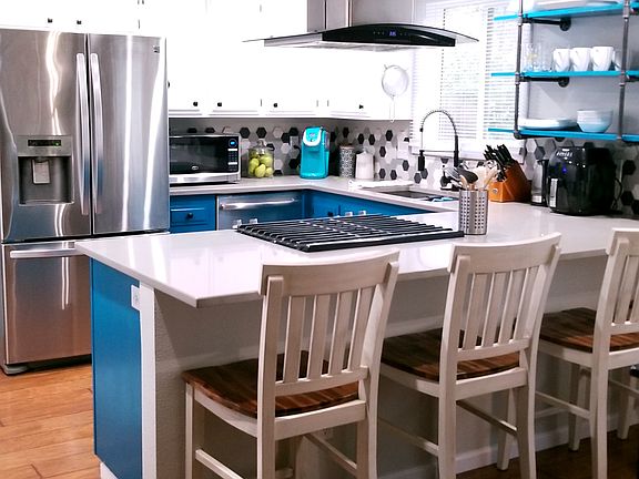 Accepted Offer with Contingencies. With a walk score of 79, this remodeled ranch house is what you have been waiting for. Updated kitchen with quartz counters, newer gas stove and painted cabinets opens to dining room. Newer flooring throughout the house. New counters in both bathrooms. A fenced yard with alley access and a covered patio. Laminate flooring in kitchen and dining new in 2014. Roof, gutters, fence and gate, quartz counters, gas convection stove and range hood, dishwasher, recessed lighting, carpet and vinyl flooring in 2017.