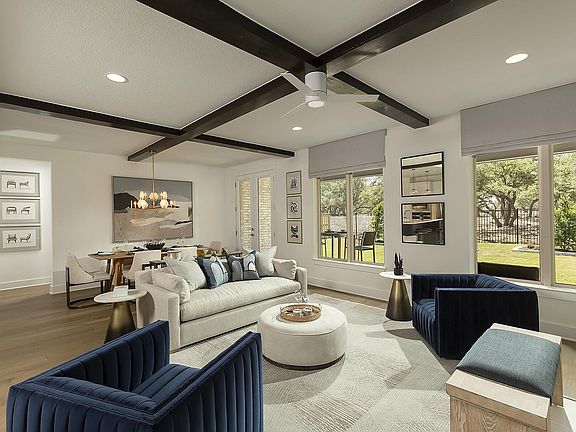 Stunning former model home with soaring ceilings, 4 bedrooms, study, gameroom, 3.5 baths, 2 car garage with no neighbor behind. Large kitchen island with built in gas appliances, covered back porch, covered front porch, open stair railing, 8' interior doors, large primary bath with separate tub and shower, LVP throughout first floor.