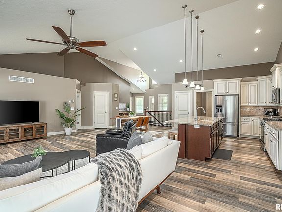 What a bright, beautiful home! This 3 bedroom, 2.5 bath ranch in east Davenport is open, airy and so well maintained. Once you enter the front door, you are greeted by vaulted ceilings, large windows and lots of space. The kitchen has granite countertops, a pantry, breakfast bar and stainless appliances that will all stay. The open floor plan allows for gathering of family and guest but is also cozy and warm with a gas fireplace in the living room. The primary bedroom is on the main and features two walk in closets, a dual sink vanity and a walk-in tile shower. Laundry is also on the main floor, along with a powder bath and plenty of storage. Off the living room, there is access to the screened in porch, deck, patio and fully fenced in yard with a 6 ft, vinyl privacy fence and a storage shed. In the lower level, there are two large bedrooms with egress windows, a full bathroom and a very large rec space with a wet bar. There are also laundry hooks up for a lower level laundry room. Additionally there is a 3 car attached, HEATED garage.
