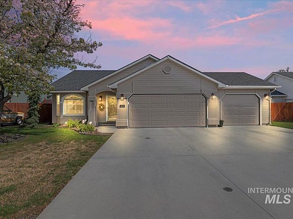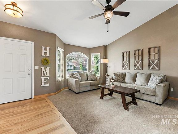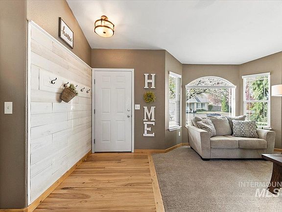 Welcome to The Islands, one of the most desirable mature neighborhoods in Nampa. Explore the neighborhood nature preserve, the park and playground that boasts a putting green and a half court for basketball. You will also have access, just around the corner, to Nampa's Greenbelt that meanders 7 miles for walking, biking, or visiting The Wilson fishing ponds with less than a one mile walk. This lovely home has real hickory hardwood flooring in entry, eating, kitchen and family room. Exterior paint, carpeting, kitchen countertops and appliances were replaced in 2023 adding a large stainless farmhouse sink. The home features 3 bedrooms and 2 full baths and 2 separate living spaces. The master is upstairs and secluded from the rest of the bedrooms. Large backyard with hot tub and above ground pool as well as a storage shed and raised planter boxes with raspberries, strawberries, rhubarb and chives. BONUS!! Home currently has a Assumable VA loan at 2.85% that may be assumed by qualified VA buyer.
