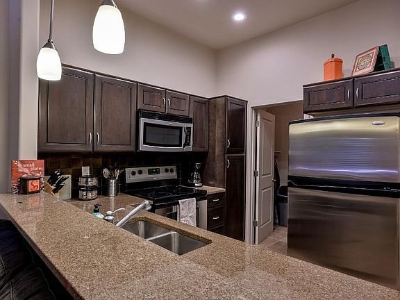 Experience the ultimate blend of comfort and convenience in this beautifully furnished condo. The modern kitchen boasts sleek stainless steel appliances, perfectly complemented by elegant travertine tile flooring that flows throughout the entire space. Relax in style with two flat-screen TVs and enjoy the convenience of an in-unit washer and dryer. Stay cool with central air conditioning, and take advantage of the community pool for a refreshing dip on warm days. Just steps away, you'll find the vibrant St. Philips Plaza, offering a variety of restaurants and shops. The nearby Riverwalk is perfect for walking, biking, and running, providing a scenic backdrop for your outdoor activities. This condo is smoke-free and offers the flexibility of a month-to-month lease, making it ideal for those seeking both comfort and adaptability. Owner pays for water/sewer, internet.