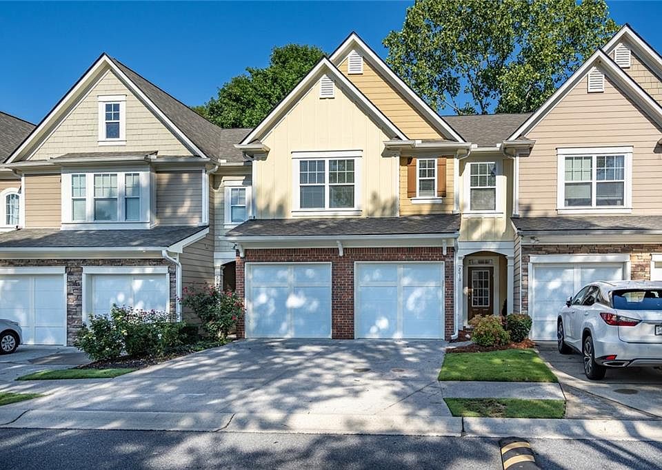 Immaculate townhome with a great Kennesaw location in popular Ellison Lakes community. Minutes to Whole Foods, shopping and everything Kennesaw has to offer this home qualifies for Zero Down financing. The 3BR/2.5BA home has been superbly maintained with all neutral colors and flooded with natural light. The home has a new roof, newer HVAC and hot water heater, new refrigerator and dishwasher, exterior is freshly painted. Main level boasts a large family room with a gas fireplace and large windows overlooking the wooded, serene backyard. The spacious kitchen and dining rooms have an open concept. Gorgeous two story foyer and hardwoods on the main level. The master suite on the upper level also has neutral colors, freshly tiled en-suite bathroom with double vanities, a separate tub, and a shower and a large walk-in closet. Great roommate floorplan with two additional bedrooms upstairs and a shared bathroom. Generous loft space can be used for office or play area. Ellison Lakes community is a well managed association with a lake, pool, clubhouse and fitness room. The HOA fees cover water, trash/recycling, termite control and landscaping.