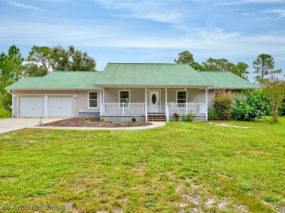 This beautiful 3-bedroom, 3-bathroom home with a bonus office (or optional 4th bedroom) offers nearly 2,200 sq. ft. of living space on a generous 2-acre parcel. Set back on a peaceful property, the home also backs up to another road, making it easy to add a shop or take advantage of the secondary access. Step up to the welcoming large front patio, perfect for rocking chairs and quiet evenings. Inside, you’ll find brand-new vinyl plank flooring throughout, with tile in the bathrooms, and a freshly painted interior that feels bright and move-in ready. The layout features a formal dining room that flows into the kitchen, which opens to a spacious living room ideal for entertaining or family gatherings. The master suite is roomy and inviting, complete with a large walk-in closet, dual vanities, and a walk-in shower. On the opposite side of the home, two guest bedrooms provide privacy. One includes its own attached bathroom plus an adjoining bonus room perfect for an office, nursery, or additional bedroom. The other guest bedroom is conveniently located next to the hall bathroom. Out back, enjoy a covered patio with a swinging chair—a serene spot to unwind. The property also includes a 20x36 shed/shop, equipped with central A/C and a vacuum system, making it perfect for hobbies, storage, or workspace. With two full acre lots, you have the flexibility to keep the land for yourself or split and sell the additional parcel. Additional highlights include a metal roof, an attached 2-car garage, and an in-house laundry room. This home truly combines space, comfort, and potential—don’t miss the opportunity to make it yours!