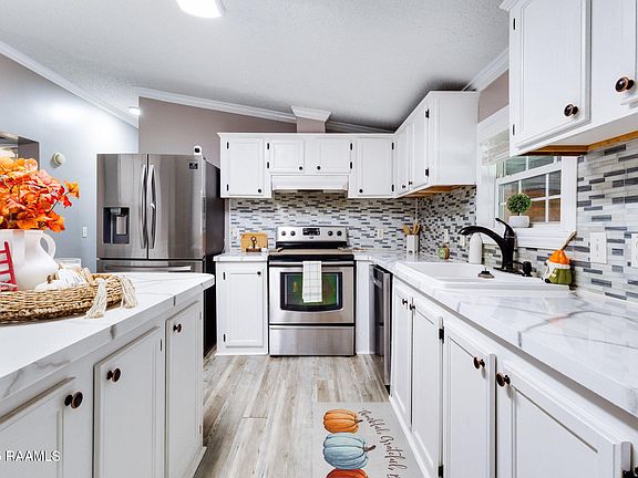 - Crown Molding, Kitchen Island, Separate Shower, Vaulted Ceiling(s), Walk-in Pantry, Walk-In Closet(s), Formica Counters