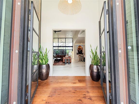 Upon entry, the home reveals a stunning open floor plan highlighted by expansive ceilings and sophisticated materials. Large-scale concrete and Italian porcelain tiles flow seamlessly throughout, establishing a sleek, modern aesthetic. The grand Primary suite is a sanctuary of indulgence, with soaring ceilings, a spa-like ensuite bath featuring an oversized soaking tub with Jacuzzi, and an enormous walk-in closet complete with built-in laundry facilities for added convenience.