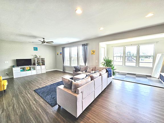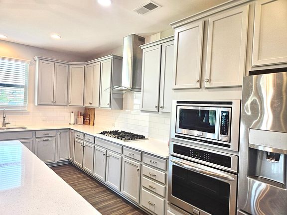 This lovely 4-bed 2.5-bath 3,153 sqft home features a Chef's kitchen open to a spacious great room plus sunroom! The kitchen has oversized island with bar seating, quartz countertops, stainless steel appliances, wall-mount microwave and oven, and a large walk-in pantry. Lots of natural light with large windows that overlook a flat backyard next to community playground and pool. A drop zone off the garage is convenient. The deluxe primary suite upstairs features huge walk-in closet and beautiful semi-frameless shower. Three additional bedrooms, a spacious loft, a double-vanity hallway bathroom, and a sizeable laundry with washer and dryer complete the second floor. The house has solar panel which significantly lowers the electric bill. Furniture can stay at the request of tenants. Tenants are responsible for utilities including water, electric, gas, cable/internet, and lawn maintenance. No smoking. Pets allowed with owner permission. Credit score 640 or higher. No section 8.