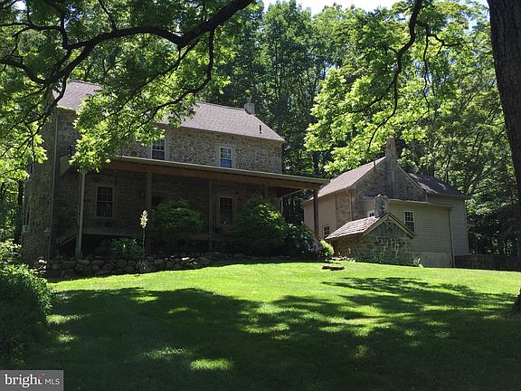 Bucolic, Private, Pastoral , Stone Farm House and other Buildings, a setting that any Artist would love to capture on Canvas. From the minute you enter the long Paved Driveway, nestled on the Hill before you is the most Beautiful Scene of Pennsylvania Farmland History. Two stunning Field Stone Houses~.one is the Main Residence and the other an Expanded Summer Kitchen. This second structure is ideal to be used for a Guest House, In-Law Suite, Au Pair Residence or even as a Rental, if so inclined. Situated between them is a Field Stone Bake Oven, rarely seen today on any Old Farm Properties. Close by, on this 4.6 Acre Property, is a Large Field Stone and Frame Barn with Post and Beam Construction, including Multiple Bays as well as four stalls underneath. Along the side of the Barn you will find a Frame Building capable of housing two cars, tractors or just for storage. Below and behind the Barn you can find another Field Stone Base and Frame Outbuilding used as a Milking Barn in the past. The beauty of this property, including magnificent old Trees, Stone Walls, a Brook that feeds a Pond, numerous Plants, Shrubs and even a patch of Wild Raspberries, must be seen to be appreciated. This delightful old Farm House really displays it~s Charm once you step inside it~s thick Stone Walls. As you enter thru the front door, you step into the Living Room, with Walk-in Fire Place, Exposed Beams, Wide Hardwood Floors, Pie Shaped Stairway, hidden behind a door, to the second floor. At the other end of this room is a doorway to the Outside Rear Deck. You can count on spending many enjoyable hours relaxing or entertaining guests while watching the Deer, Fox, Rabbits and other wildlife that inhabit your property not to mention the many varieties of birds.. You will find the Farm Style Dining Room to your left, which also boasts of a separate entrance. Pass thru the Dining Room to the Kitchen, beaming with Old Farm Charm, yet offering the modern Appliances, Dishwasher, Wall Oven, etc. for the convenience of the Master of the Kitchen. Once you enter the Hidden Pie Shaped Staircase behind the Living Room Door, you climb to the Second Floor which Includes Three Bedrooms; A Hall Bath Room as well as a Bonus Room/Area ideal for an Office, Sewing Area or Reading Place. All the Rooms have Multiple Windows, with Deep Sills, allowing for a Bright and Cheery Atmosphere. Bedroom number two has another Hidden Pie-Staircase to a Walk-up third floor Attic with a finished Wide Plank Hardwood Floor. This provides plenty of space for extra Storage or has been utilized as an Extra Bedroom in the past. Rumored to be Built prior to 1800 and which once served as a Local Meeting Place. Although extremely Private, the Property is conveniently located close to Routes 663 & 29, near Shopping, Restaurants, as well as the Pennsylvania Turnpike Extension.