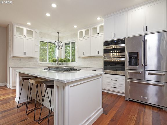 Huge Price Drop! One of a kind contemporary in sought after West Linn neighborhood, lovingly remodeled top to bottom will not disappoint. Located at the end of quiet culdesac, boasts 6 bdrms, 4.5 baths (2 J&J), loads of living space, 3-large decks, outdoor kitchen, Bull smoker included in sale. Master on first lvl of this 4-lvl home has the closet most of us dream about. Room for everyone inside/out & large detached garage for car enthusiasts or hobbyists. Year round views of Willamette.