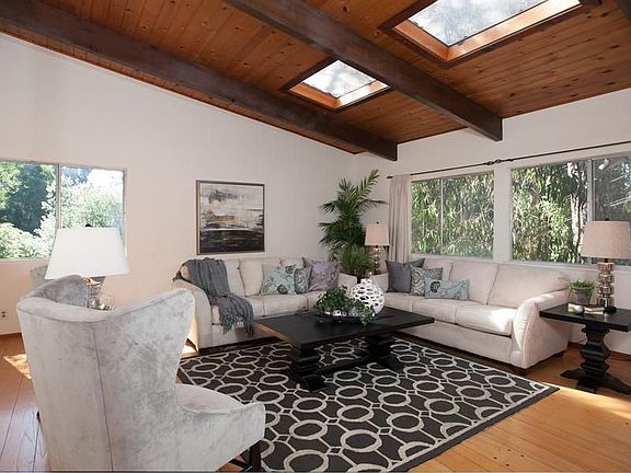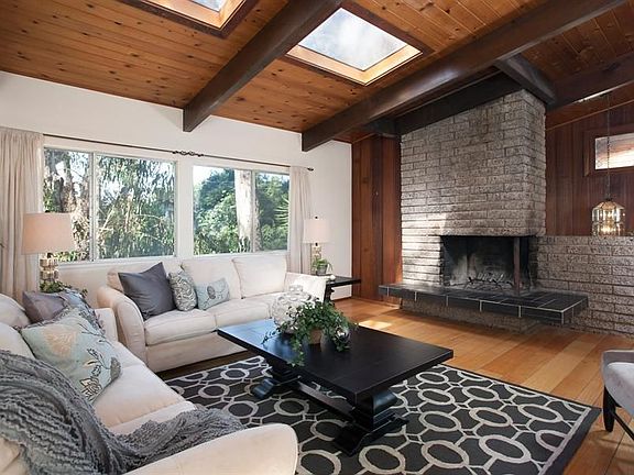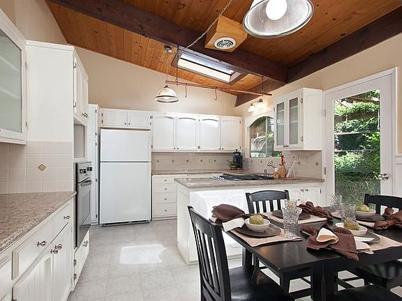 Oakmore Traditional with flexible floor plan. Some rustic features such as plank floors, vaulted wood ceilings, skylights, two stone fireplaces. Updates throughout. Downstairs has large family room, one bedroom, one den/office, utility room, possible au-pair set up. Charming yard and play area.