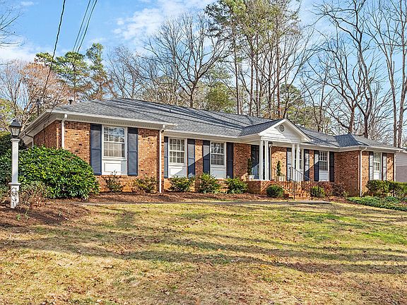 Beautiful charm and positioning, elevated just above the street in Meredith Woods. Classic lines, symmetry and beautiful red brick. Further, the house is framed by a flat back yard with custom bluestone patio and irregular slate entry original entry. A larger ranch plan that includes an integrated carport, storage and ample sized living spaces, including family and formal dining rooms. A crisp newer kitchen with central island rests central to the carport, laundry/mud room and dining room for ease of circulation. Exposed beams, masonry fireplace and dual french doors connect the family room directly to the yard. The primary suite includes updated en-suite bath and the rear bedroom has option to use connected flex room with bath, for an office or play. Walkable to the City of Raleigh Greenway and NC Museum of Art Park and the brand new NC DHHS Campus. Proximal to Rex Hospital, I440 and numerous amenities of West Raleigh.
