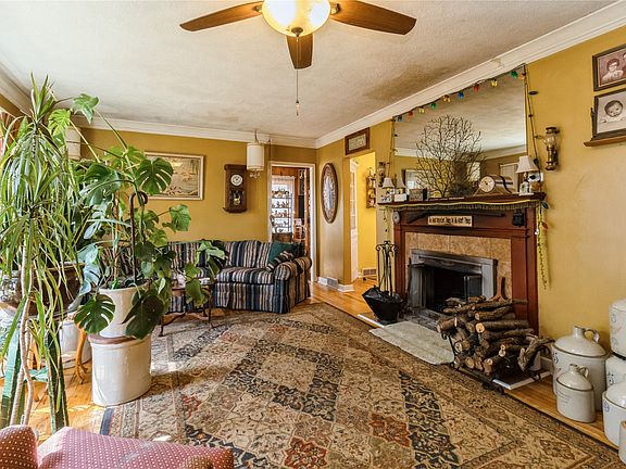 This character filled home is oozing with charm and natural light from the two wood burning fireplaces, the large eat-in kitchen, original hardwood floors, and the period specific bathroom tile. The large living room is super inviting with a working wood burning fireplace, den, and convenient access to the kitchen and large back deck. You'll love the finished space in the basement, non-conforming bedroom, 3/4 bath, and bar in the basement. Schedule your showing appointment today!