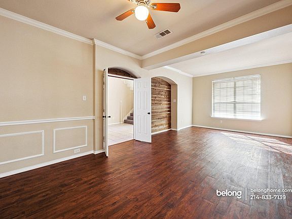 Warm character, generous living space, and four comfortable bedrooms come together in this 4-bedroom, 2.5-bath Allen home, offering a welcoming place to unwind and enjoy everyday living. The living area is open and inviting, with soft carpet underfoot and a ceiling fan that keeps the space comfortable year-round, creating a natural setting for relaxation and quality time.