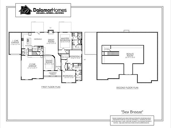 RANCH STYLE 3 BEDROOMS ON MAIN FLOOR - Affordable Custom Homes by Dalamar Homes! - The Sea Breeze - All Brick - 3 Car Garage - Hardwood - Great Rm w/coffered ceiling & Gas Fireplace - Bonus Rm upstairs - Laundry Room - 10'ceilings on 1st Floor, 9' ceilings on 2nd Floor - Tray ceilings in Master and Dining Rm - Gourmet Kitchen w/Custom painted cabinets - Walk in Closets - Patio - Granite Counter tops - Separate tub & shower in Master Bath - Tankless Water Heater - Wainscot Panels in Dining Room!
