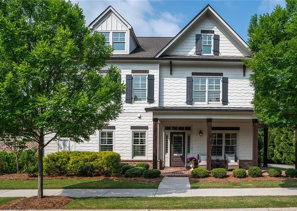 Beautiful end-unit, primary on main townhome within walking distance to downtown Crabapple where you can enjoy shopping, restaurants, farmers market, concerts on the green and so much more! Just minutes from downtown Alpharetta, Avalon and historic Roswell. Enjoy morning coffee under the covered rear patio or the rocking chair front porch. This townhome has a rare Primary bedroom on the main with separate his/her closets, luxurious soaking tub and private & convenient laundry room! This home offers beautiful details such as coffered ceiling, crown moulding, wainscoting & stone fireplace. The second floor has a large loft area for a second living space/flex space, spacious secondary bedrooms with walk in closets, 2 jack/jill baths & second laundry room. There is a huge unfinished walk in storage area that could be finished for additional living space. Top rated schools!