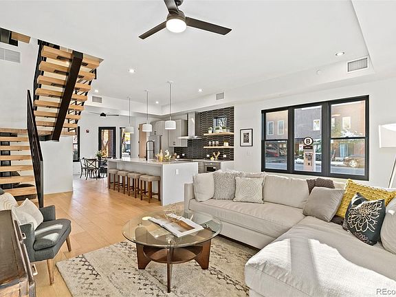 New Construction on historic Pearl Street in Boulder! Unwind with the convenience of world class restaurants and boutiques along with outdoor hiking trails and boulder creek at your doorstep in this downtown Scandinavian minimalist oasis. Western natural light pours into the open floor concept of this 3BR 3BA end unit where the mountains act as a fresco painting backdrop out of every window. Clean lines revel on the artistic floating staircase with butcher block treads glowing from the immense sun lit 17 by 4 foot skylight above. Wide planked 8-inch white oak hardwood floors expand the entire space with subtle elegance widening the floor plan allowing the space to feel airy and breathe. A stately 10 foot kitchen island features a handsome grey 6cm quartz waterfall countertop built for gathering entertaining. Grey Shaker cabinets and maple shelves adorn the black Berdonsian custom backsplash and sleek stainless steel Thermadore appliances highlighted by a duel fuel gas range/electric oven crown the kitchen's fresh design. Fishtail Berdonsian black tile accent the powder bath with pedestal vanity and mudroom off the garage this floor plan and finish marry both form and function. The spacious master bedroom is encompassed by the iconic view of the flatirons and acts as a refuge from the day with a master bathroom featuring dual floating vanity with black honed miste granite and artistic sinks, custom Soci Modern Wood Chevron Maple tile accent wall, sliding barn door, secluded tiled waterfall glass enclosed shower. Then play amongst the Boulder clouds walking up architectonic staircase through the automatic glass roof hatch skylight to reveal awe-inspiring 360 degree views of a over 1,020 square foot outdoor rooftop deck covered with 2 X 2 concrete pavers and stubbed for full outdoor kitchen, hot tub, fireplace and grill. One of a kind luxury and style - a must see! www.alveareboulder.com