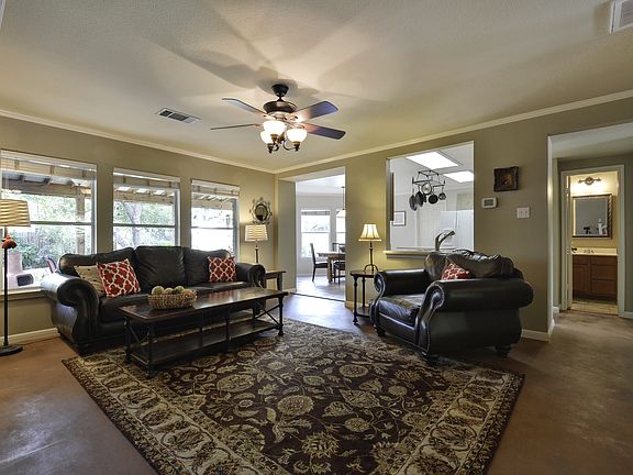 Amazing! This house is a must see with incredible curb appeal, beautiful oak trees, lush professional landscaping, large covered patio - outdoor living at its best! Huge master suite with sitting area, large closets, huge mudroom/utility room/pantry. New carpet, sprinkler system, large lot. Across the street from Cave Preserve with hike and bike trails.