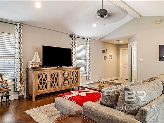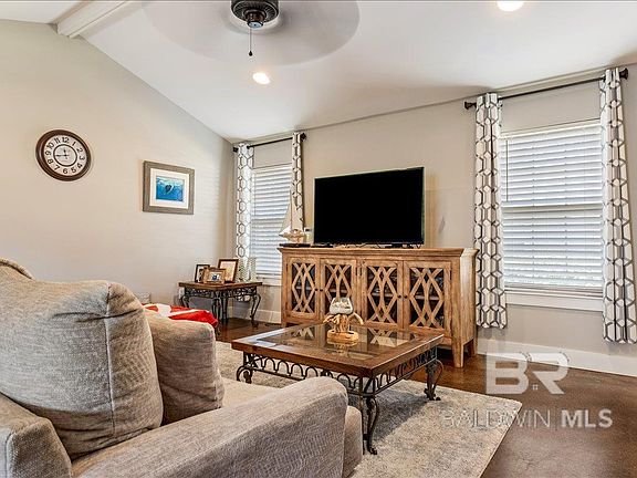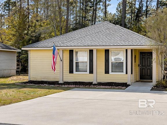 BRAND NEW ROOF!! This beautifully maintained 3-bedroom, 2-bath home with vaulted Ceilings in Spanish Cove backs up to peaceful wooded area, offering exceptional privacy and a serene setting. The open-concept layout flows seamlessly from the kitchen into the living area, perfect for everyday living and entertaining. This home features durable Hardie board siding, high-quality kitchen cabinetry, and a low-entry shower for added comfort and accessibility. Refrigerator, dishwasher, stove and microwave included in sale, making this move-in ready. Enjoy quiet mornings or relaxing evenings on the covered front and back porches and take advantage of the 12 x 20 backyard shed for extra storage. Home has brand new paint and a 2025 ROOF! Don't forget private and personal use of your community pool, pier, boat ramp. boat launch and club house. Spanish Cove offers an impressive array of amenities, including a year-round pool (pool is heated and covered in winter), fishing pier on Perdido Bay, Tennis Courts, Basketball, and shuffleboard courts, playground, two clubhouses, public showers, laundry facilities, and 24-hour security. The community hosts a full calendar of activities ranging from exercise to crafts and everything in between! Ideally located in Lillian, you’re just 15 minutes to Perdido Key, 15 miles to downtown Pensacola and NAS Pensacola, 15 miles to Foley, 20 minutes to Orange Beach, and 25 minutes to Gulf Shores — easy access to all interstate and local roads while enjoying a relaxed coastal lifestyle! This is a must-see home that won’t last long! Buyer to verify all information during due diligence.