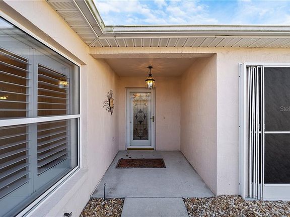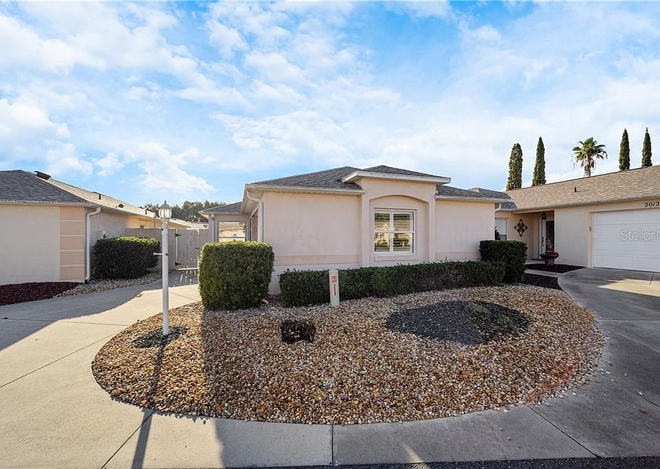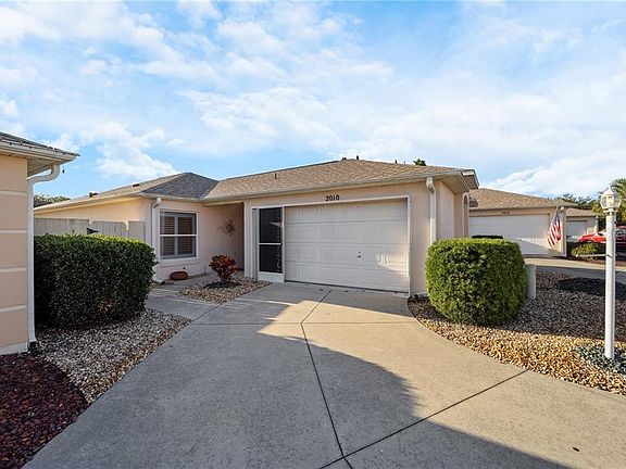 Have you been dreaming of a LOW MAINTENANCE Florida getaway? This 2/2 COURTYARD VILLA in The Villages, less than 3 miles from the Spanish Springs Town Center may be just what you've been looking for. There is NO GRASS TO MOW, and the ENCLOSED LANAI looks onto the PRIVATE courtyard with pavers. It has TILE throughout the main living area, kitchen, and bathrooms, and carpet in the bedrooms. The master bedroom has a HUGE CLOSET, and an ENSUITE BATHROOM with walk-in shower. The high ceilings in the dining and living area make the space feel open. It is located in the Village of Santo Domingo in the Villas De La Ramona, close to golf, tennis, pickleball, and the list goes on and on. There are also thousands of clubs in The Villages, and you will only be bored if you choose to be. Don't put off finally living The Villages lifestyle. Call today for a private showing.