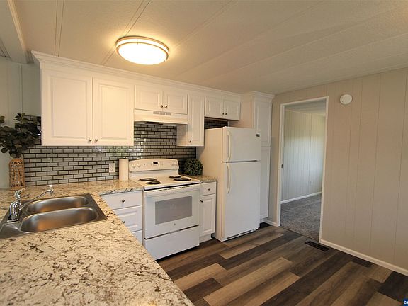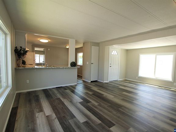 Remodeled in 2023 this manufactured home offers new vinyl plank flooring, select ew appliances, energy-efficient vinyl windows, central air conditioning, & a standing seam metal roof plus PEX plumbing, enjoy the updates. Open floor plan creates a large living room that flows into the kitchen featuring new cabinets, counters and a breakfast nook. In a great location, close to shopping, entertainment, schools on the bus route! Enjoy efficient, simple living w/style & comfort in this great move-in ready home.
