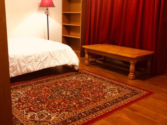 Property Id: 178277 SHARE 2 Bedroom/1 Bath apartment @Google campus, Mountain View. $1675/month, utilities and parking included! Adjacent to Google campus, Shoreline Amphitheater, sailing, concerts, and hiking trails. Very large 14 x 11' bedroom in airy spacious, fully remodeled two bedroom/1 bath apartment with large mirrored closet Mahogany wood floors throughout, tile kitchen and bath, garden balcony and patio with barbecue. Beautifully remodeled throughout, mid-century building with much larger room sizes than most newer buildings. Quiet, small 9 unit complex with NO shared walls, 3 units per building. Furnished apartment, furnished or unfurnished bedroom available. Quiet, harmonious, happy household. Extremely quiet neighborhood and apartment complex, yet one block down the street from Safeway, Costco, banks, gas station, car wash!. Small indoor dog or cat allowed. Please provide phone number and a little about yourself. SHARED apartment available 12/1/19