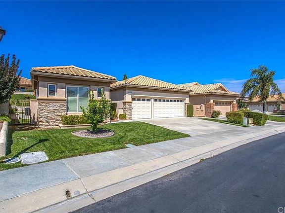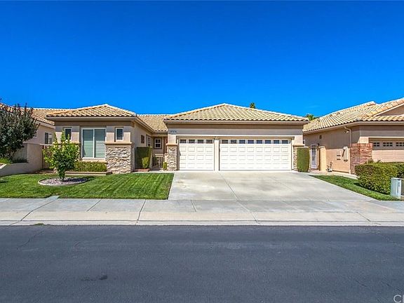 Exceptionally Charming One-Level Home in Banning! It is the largest model In Sun Lakes, the Wisteria Model!! And all on one story!! NO Mello Roos!! This Turnkey property is MOVE IN READY!! Conveniently situated in the 55+ active-adult golf community of Sun Lakes Country Club, this 2BR/2.5 Baths, 2,219 sqft residence captivates with Spanish-inspired architecture, manicured landscaping, an entertainment-ready floorplan, tons of natural light, a large living room, a separate formal dining room with crown molding and a fully equipped kitchen featuring white appliances, spacious countertops, ample cabinetry, and a family area w/fireplace and built-in speakers.. Fully enclosed for privacy and easy enjoyment, the backyard also includes an Alumawood patio cover that is across the entire length of the home and a built-in BBQ, with storage and featuring artificial grass. Oversized for abundant comfort, the master bedroom has tray ceilings, an enormous closet, and an en suite with a jacuzzi tub, dual sinks, and a separate shower. Bask in the multitude of community amenities, such as two 18-hole golf courses, 3 clubhouses, 2 restaurants, bar & lounge, tennis, pools (1 indoor), spas, 3 fitness centers, and over 70+ social clubs, plus RV Parking!!. Other features: 3-car garage with custom built-ins, including slide-outs, a pull-down attic stairway, and a separate laundry room with sink.. Conveniently located near shops, only 25 minutes from Palm Springs and more! Come See Today as you won't want to miss the amazing home!!!