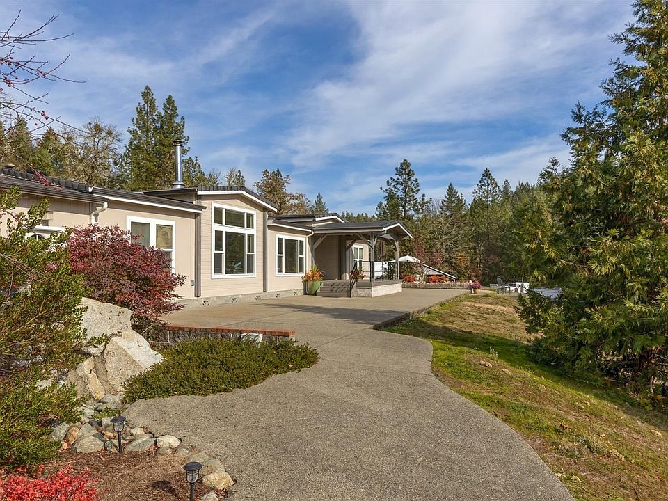 PRIVATE AND SECLUDED 80 ACRES! YET CLOSE TO TOWN! If you need a shop ...look at this! OVER 5,000 sq.ft (83x71) IN addition an attached 25x83 storage area! And, in addition to that an over 6 car garage that is attached to the house. Gorgeous Palm Harbor triple wide that has been updated to look brand new! Large living room and dining room in addition to good sized eating area in Kitchen. Very large family room. Hickory floors, quartz counter tops, custom cabinets, limestone surround for jetted tub. Large Covered front porch entry that allows views out onto the large pond, the meadow and then out into the tops of the beautiful forested surroundings. Trails for hiking or riding. Even an ''old time forester'' came to the property and was ''wowed'' by this setting! Outdoor entertaining around the in ground Viking fiberglass pool and stamped concrete patio area. Everything is here....high producing well and water rights from pond. Please view video!