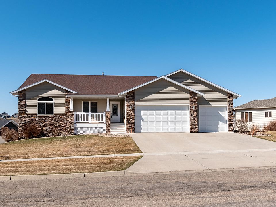 Immaculate one owner ranch style home with main level laundry room and half bath, South facing driveway and three bedrooms on the main floor. Private kitchen and dining room with center island, beautiful cabinets and granite counter tops. Spacious dining room will accommodate a large dining table and offers a patio door to the deck. Master bedroom suite with private master bathroom. Walkout lower level with spacious family room/rec room and gas fireplace, two additional bedrooms, office/den, full bathroom and a large storage area in the furnace room. Heated oversized triple garage with hot & cold water, floor drain and additional space in front of the third stall, excellent space for workbench or additional storage. High efficiency furnace, central air and sprinkler system.