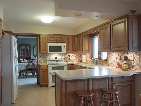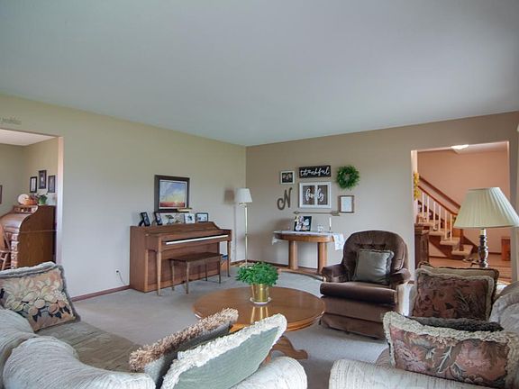 Beautiful home on large corner lot. Four bedroom home with three bathrooms. This move-in ready home is in excellent condition, with many updates and unbelievable amounts of storage. Beautiful kitchen with Corian counter-tops, pantry, double oven, nice appliances and cabinetry w/pull-out drawers and under-cabinet lighting. Fabulous feature of home is newer sunroom, complete with heat , A/C, and wiring for TV. Back patio is covered. Windows, roof and siding new in 2004. Newer smoke alarms. Some windows have internal blinds. Wood fireplace has gas starter. Finished lower level complete with additional storage, including a gift wrapping station, office area and a wet bar and counter for entertaining! Garage has nice floor, extra space in front, storage areas, entry to porch, newly painted w/floor drain & electricity. Home has leaf gutter guards. Current owners are only second owners.